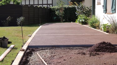 - L’apport de la sous-couche : il est nécessaire d'installer une sous-couche de cailloux qui favorisera le côté drainant de votre sol et le rendra stable. Compacter.